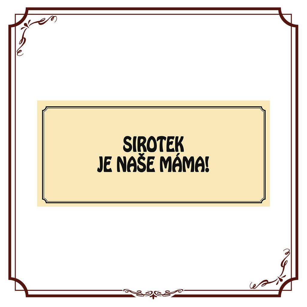 "Sirotek je naše máma." Bohužel nějaký vandal k tomu připsal: "Sirotková je náš táta."